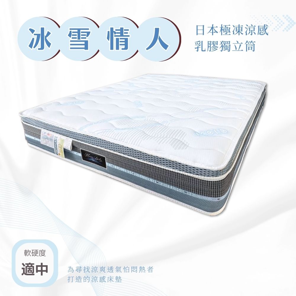 炎熱盛夏,你一定想來一張涼感舒適的好床!>>> 採用日本東洋紡織100%ICOLD極凍冰晶紗布,更採用高密度釋壓棉、天然乳膠及防塌陷棉層,更採用中鋼無輻射三次高溫迴火高錳碳鋼獨立筒,側邊加強使用M型輔助彈簧支撐,不怕您側身傾斜滾下床,更重要的是全床皆採用SGS檢驗合格之內墊! 尺寸 3.5*6.2呎, 5*6.2呎, 6*6.2呎, 6*7呎